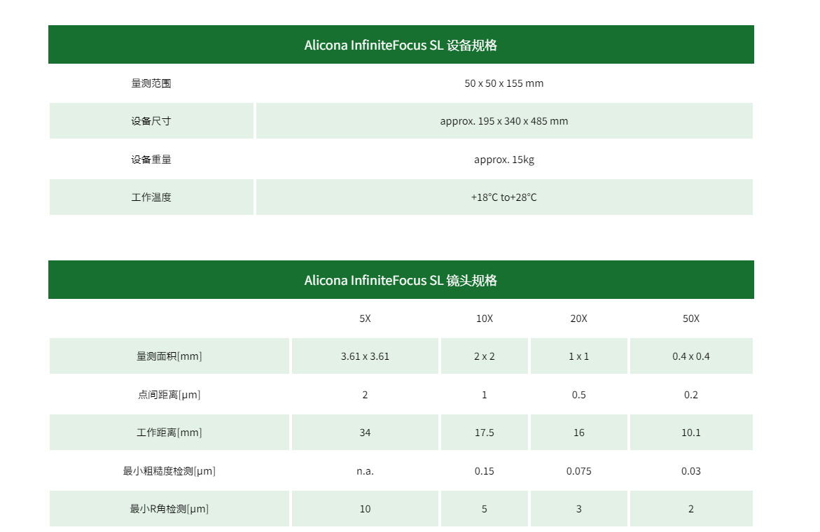 InfiniteFocusSL是一种经济高效的光学3D测量系统,可轻鬆,快速且可追溯地测量微结构化表面上的形状和光洁度。用户仅用一个系统即可测量组件的形状和粗糙度。另外,获得具有高对比度和焦点深度的彩色图像。长达33mm的长工作距离及其50mm x 50mm的测量范围相结合,可实现广泛的应用。测量可以在几秒钟内完成,并且具有诸如同轴激光的功能,可以快速,轻鬆地聚焦,从而进一步提高了可用性。借助自动化接口,InfiniteFocusSL还可以用于生产中的全自动测量。