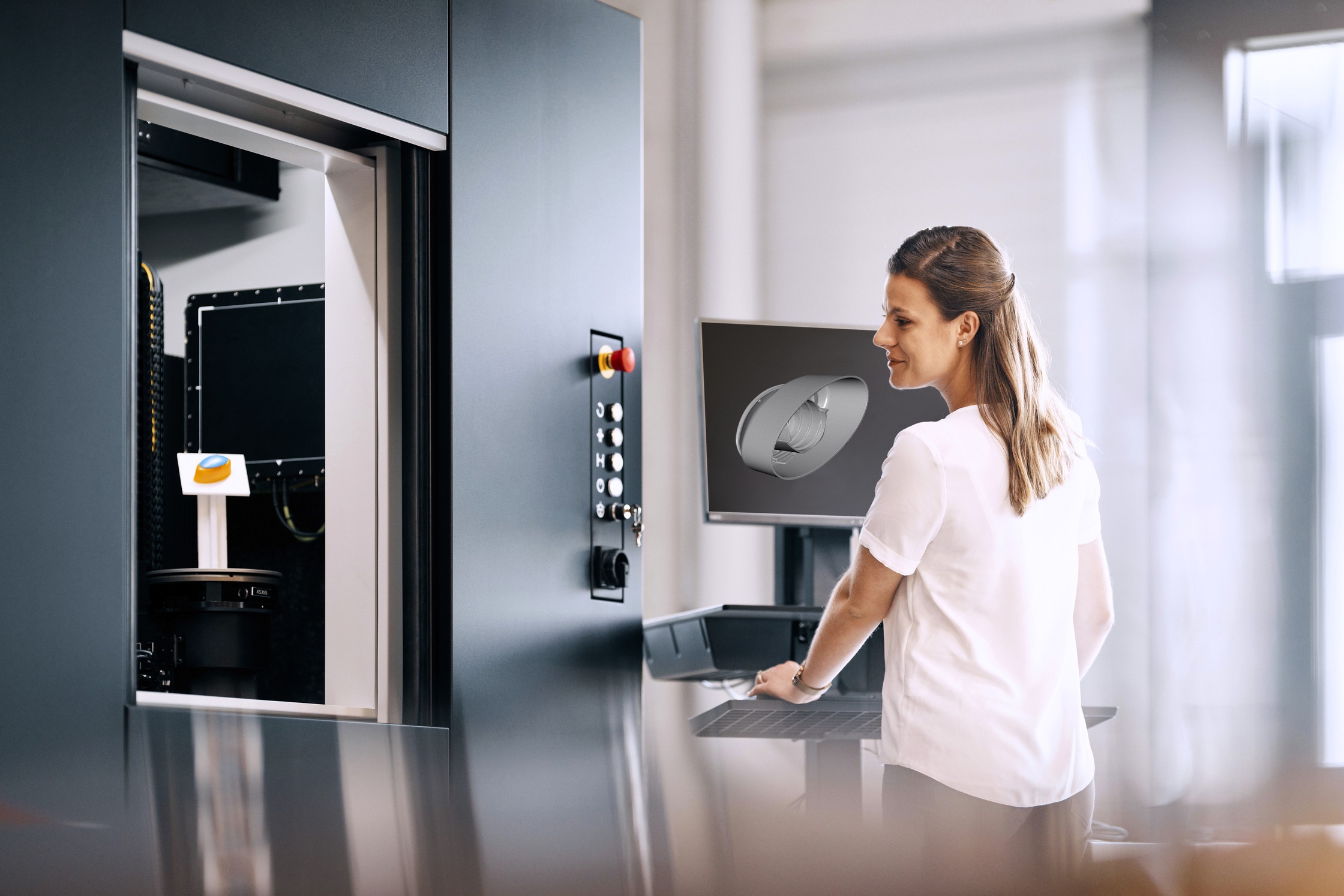 机械臂五轴运动系统加上内部集成中央转台可确保零件始终处于最佳测量点,为用户获取准确的体积数据;您只需将零件放入机器内部的测量单元,软件便会自动执行后续所有测量和检测程序